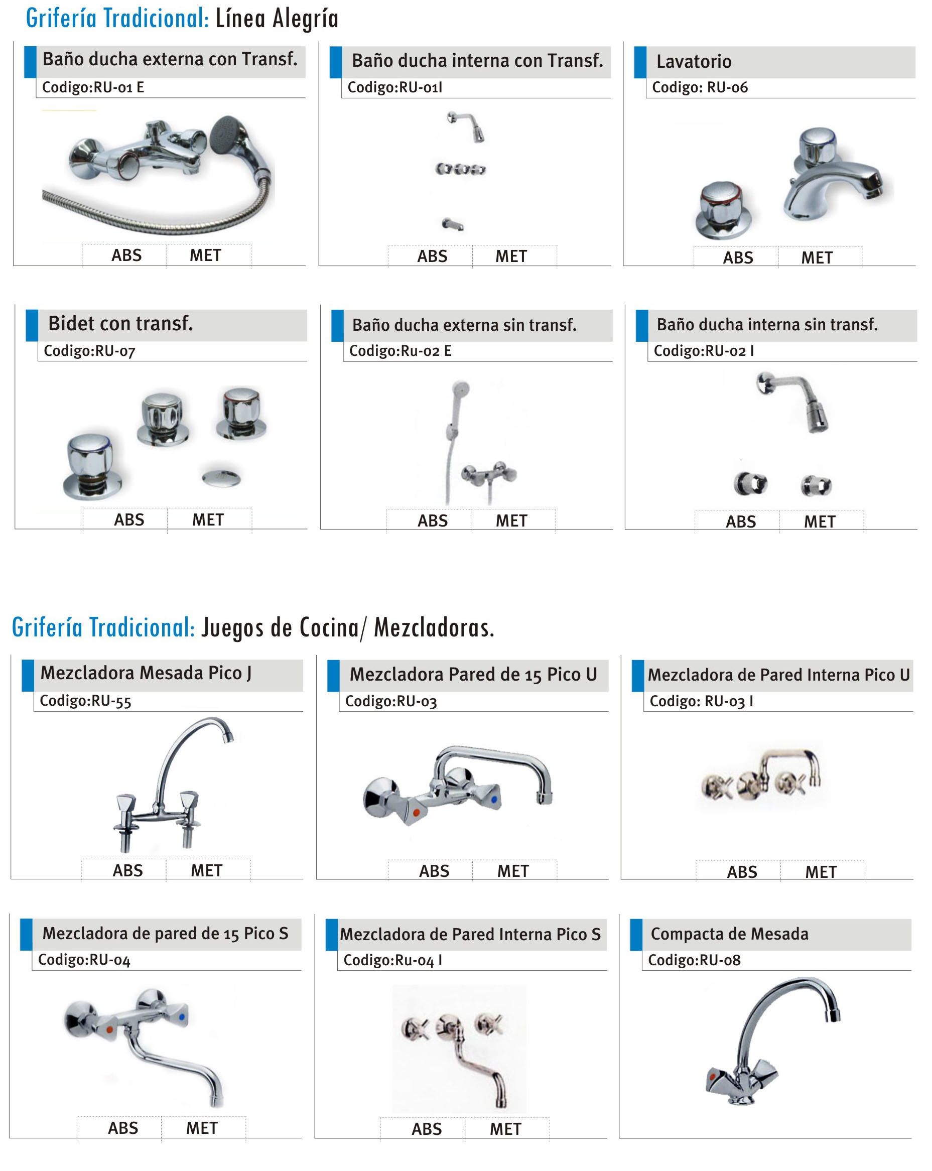 GRIFERÍA TRADICIONAL | MONOCOMANDO | TEMPORIZADAS
